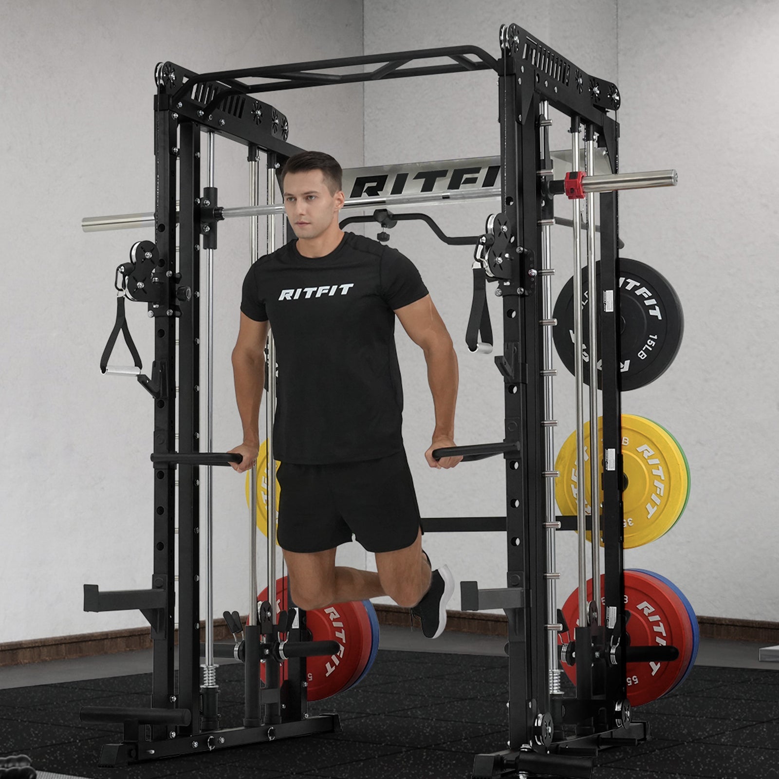 RitFit M1 PRO Multi-Functional Smith Machine with Cable Crossover System and Squat Rack for Home Gym